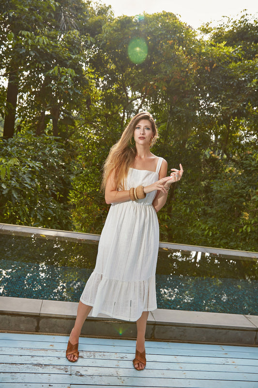 Camélia Camel Brown Ribbed Viscose Midi Dress