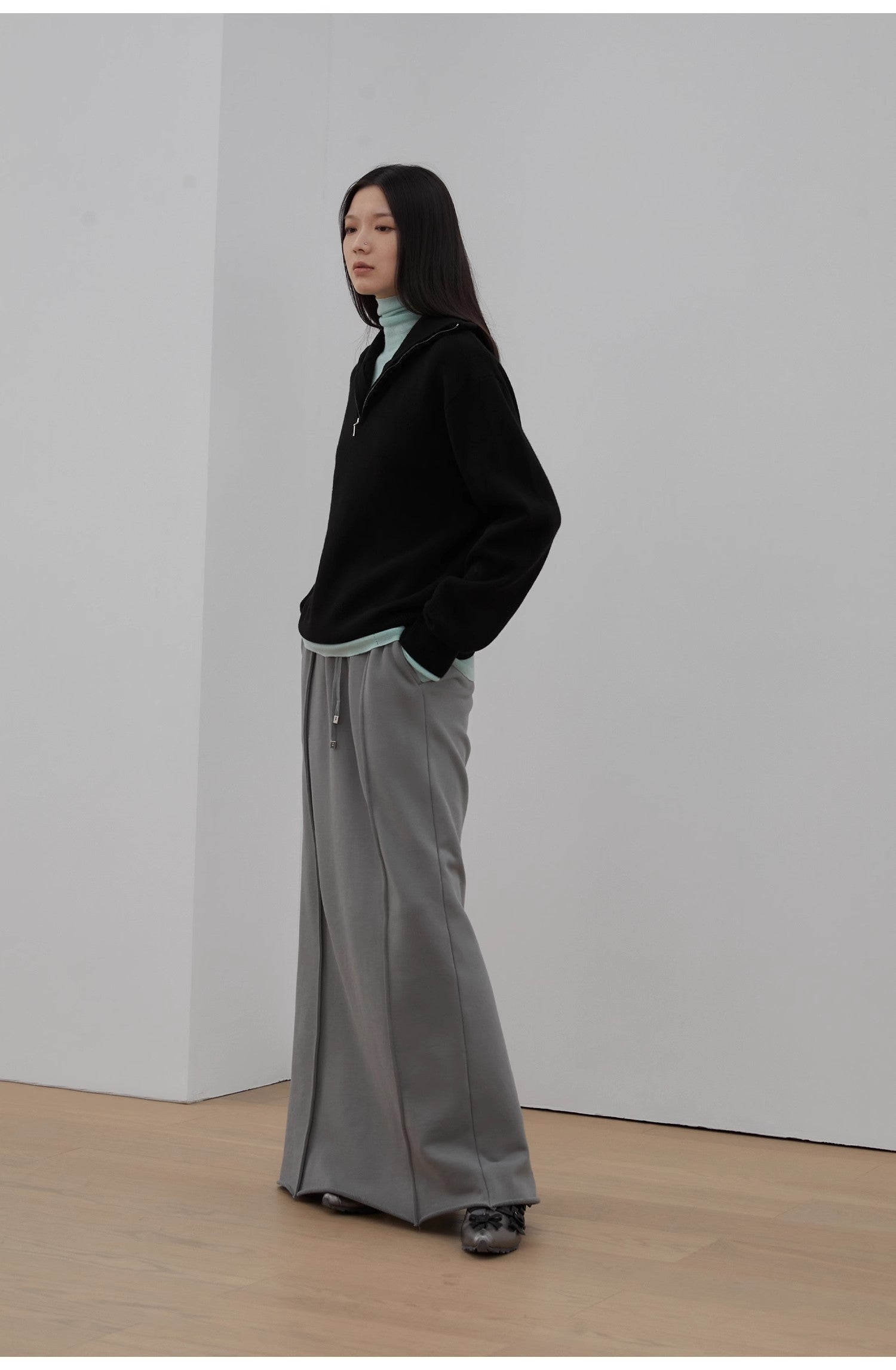 • Polo-style turtleneck with double-ended zipper