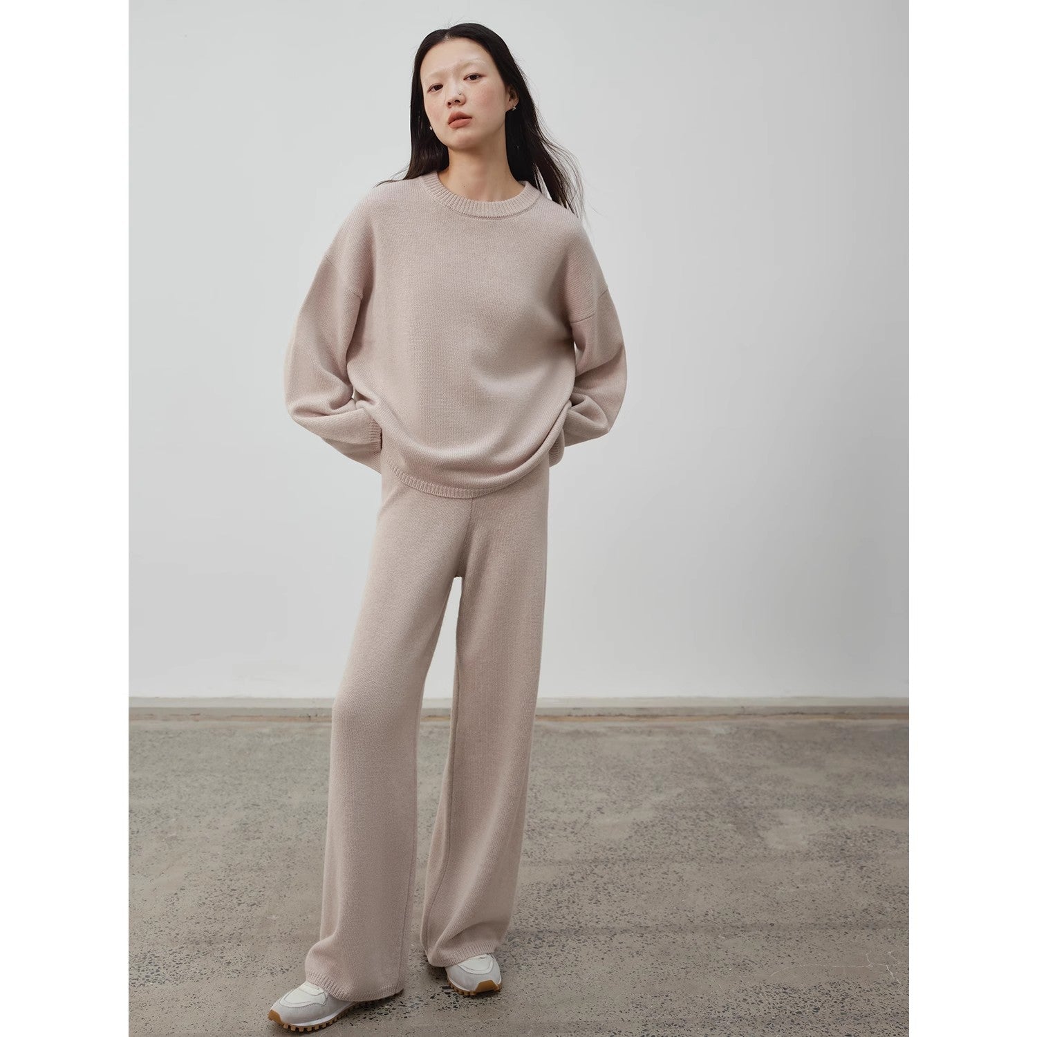 Soft, breathable, and effortlessly refined, the Solange Knit Set brings a minimalist winter elegance to everyday dressing. Crafted from ultra-fine Australian merino wool yarns, this two-piece ensemble features a relaxed knit top and matching straight-leg pants, offering a warm, lightweight feel with a clean, modern silhouette. Perfect for cozy days, elevated loungewear, or minimalist street styling.